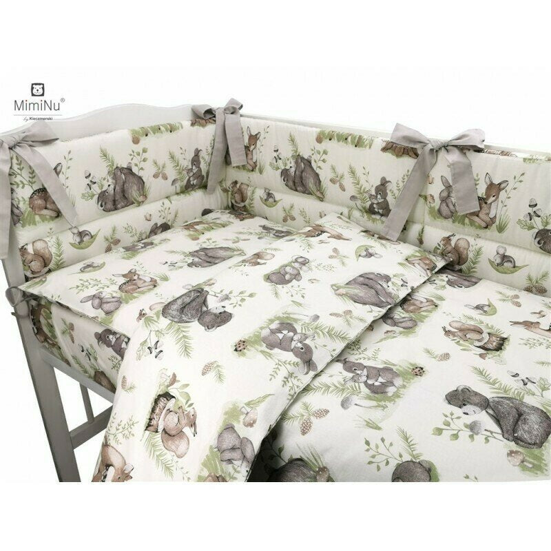Cearceaf cu elastic, MimiNu, Pentru patut 120X60 cm, Din bumbac certificat Oeko Tex Standard 100, Design, Calm Forest Natural