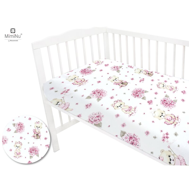 Cearceaf cu elastic, MimiNu, Pentru patut 120X60 cm, Din bumbac certificat Oeko Tex Standard 100, Design, Pink Ballerina