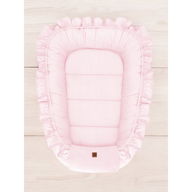 Cosulet bebelus, MimiNu, Pentru dormit, Baby Nest 55 x 75 cm, Cu Volanase, Din catifea, Pink