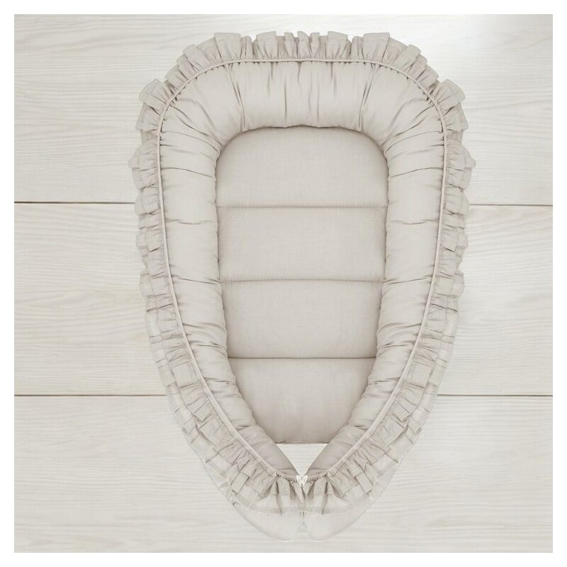 Cosulet bebelus, MimiNu, Pentru dormit, Baby Nest 55 x 75 cm, Cu Volanase, Husa 100% bumbac, Din bumbac certificat Oeko Tex Standard 100, Colectia Royal, Beige