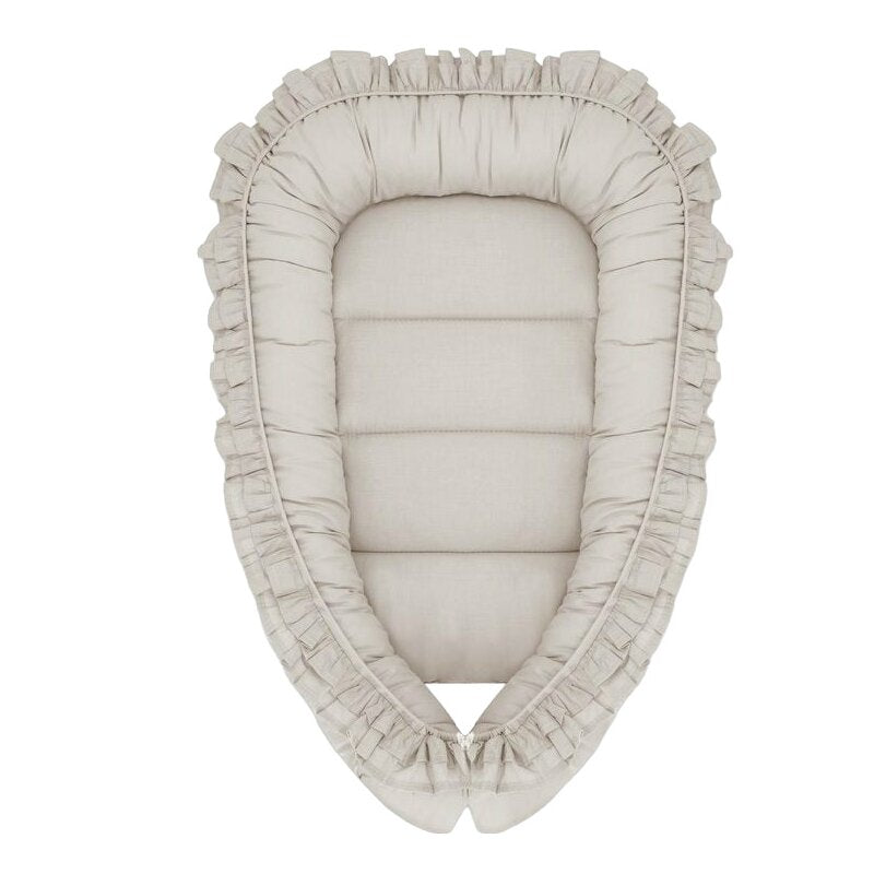 Designul rafinat cu volanase si nuanta neutra Beige transforma acest baby nest intr-un accesoriu atat practic, cat si decorativ. Poate fi integrat in orice camera de copil sau oferit ca un cadou sofisticat pentru un baby shower sau botez.