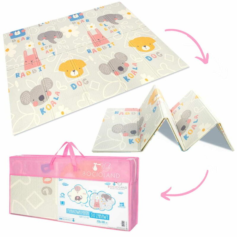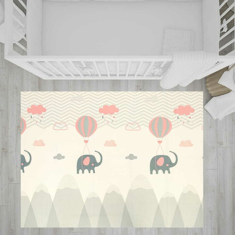 Covoras de joaca, Bocioland, Grey Elephant, Pliabil, Protectie impotriva loviturilor, Dimensiune mare, 180 x 150 cm, Cu Imprimeu pe ambele parti, Potrivit pentru utlizare atat in interior, cat si in exterior