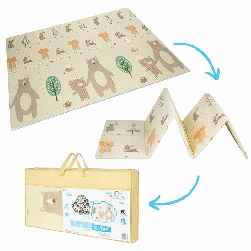 Covoras de joaca, Bocioland, Little Bear, Pliabil, Protectie impotriva loviturilor, Dimensiune mare, 200 x 150 cm, Cu Imprimeu pe ambele parti, Potrivit pentru utlizare atat in interior, cat si in exterior