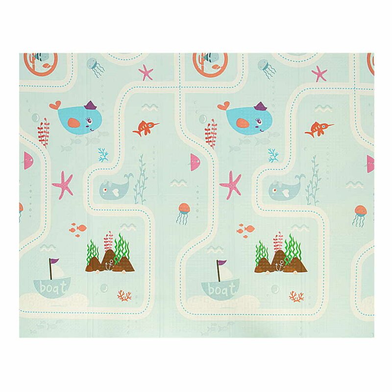 Covoras de joaca, Bocioland, Water City, Pliabil, Protectie impotriva loviturilor, Dimensiune mare, 180 x 150 cm, Cu Imprimeu pe ambele parti, Potrivit pentru utlizare atat in interior, cat si in exterior