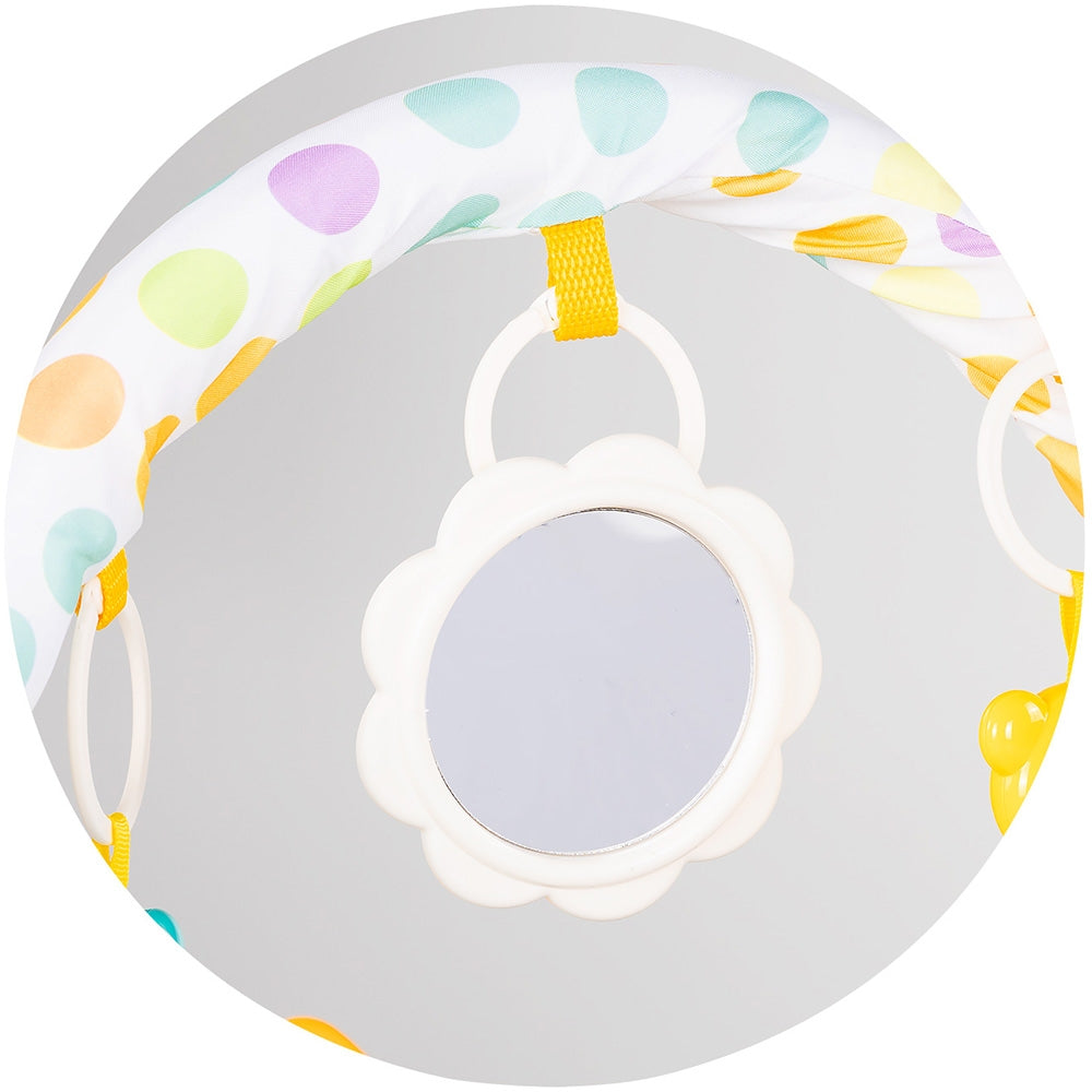 - Echipat cu un arc si cinci jucarii suspendate diferite, astfel incat bebelusul va fi angajat pentru ore intregi de joaca