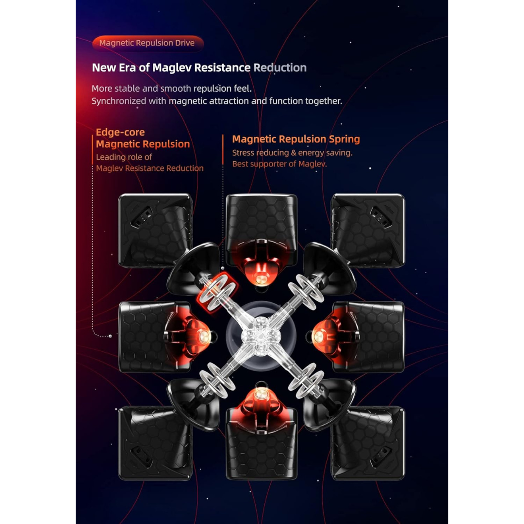 Cubul GAN13 Maglev este varful inovatiei in tehnologia cuburilor de viteza, conceput pentru cei care cauta perfectiunea in fiecare miscare. Acest cub avansat 3x3 introduce functii revolutionare care imbunatatesc atat viteza, cat si controlul, stabilind un nou standard pentru cuburile magnetice. Experimenteaza rotiri aproape fara frecare datorita tehnologiei maglev, unde respingerea magnetica creeaza un strat exterior ce &bdquoleviteaza&rdquo. Acest lucru reduce semnificativ rezistenta, oferind o experienta de rotire lina si fara efort. Sistemul magnetic de baza aliniaza automat fiecare strat cu precizie, permitand rezolvari mai rapide si mai exacte. Alinierea de 30°+ asigura faptul ca fiecare miscare se incadreaza perfect, reducand necesitatea ajustarilor manuale. Cu pozitionarea centrala imbunatatita, GAN13 Maglev introduce magneti de margine care duc respingerea magnetica la un nou nivel. Cubul este complet integrat cu 88 de magneti plasati strategic, asigurand o forta magnetica constanta pe tot parcursul utilizarii. Aceasta acoperire magnetica completa imbunatateste stabilitatea si fluiditatea cubului, facand fiecare rotire sa se simta naturala si controlata. GAN13 Maglev dispune de un sistem sofisticat de reglare numerica, care iti permite sa personalizezi forta magnetilor, tensiunea si distanta de miscare. Cu 216 setari posibile, poti ajusta cubul pentru a se potrivi perfect preferintelor tale. In ciuda faptului ca are cu 40 de magneti mai mult decat modelele anterioare, GAN13 Maglev ramane incredibil de usor, cantarind doar 71g. Acest lucru asigura ca viteza nu este compromisa, oferind o experienta de rezolvare rapida si agila. De ce sa alegi GAN13 Maglev? GAN13 Maglev este conceput pentru cuberii de viteza care cer performante de top. Indiferent daca participi la competitii sau vrei sa-ti depasesti recordurile personale, acest cub ofera precizie, stabilitate si viteza fara egal.
