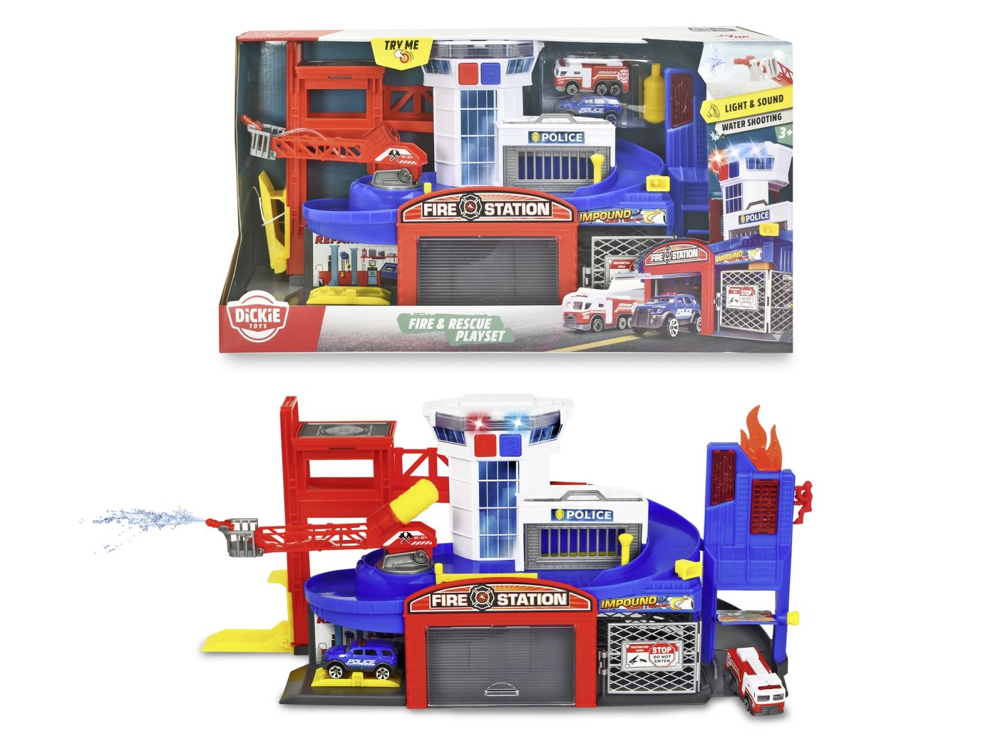 DICKIE SET STATIE DE POMPIERI SI SALVARE CU PULVERIZATOR DE APA SUNETE SI LUMINI