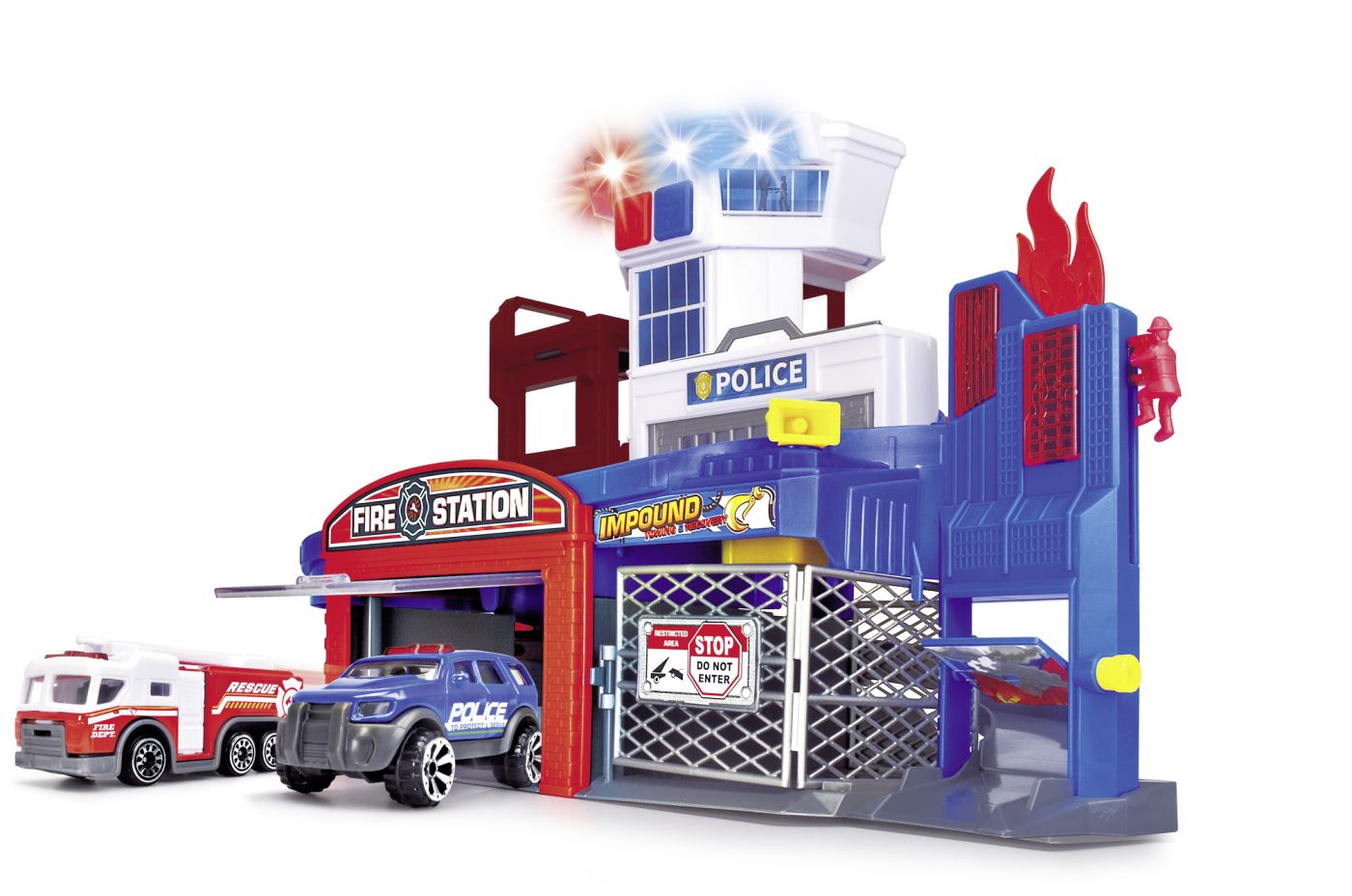Statia de pompieri si salvare este setul perfect pentru micii eroi pregatiti de actiune! Avand dimensiunile de 50 x 17,5 x 24 cm (LxlxI), aceasta include o sectie de pompieri si politie, o rampa dinamica si un lift manual, transformand joaca intr-o experienta realista si captivanta. Setul contine doua vehicule o masina de pompieri si un vehicul de politie, dar este compatibil si cu alte masinute de jucarie de la branduri cunoscute. Efectele luminoase si sonore cu sirena si lumina albastra de pe turnul de control sporesc atmosfera de urgenta si distractie. Apasa butonul, porneste sirena si lanseaza masinile pe rampa direct in misiune! In plus, statia este dotata cu o scara rotativa cu functie de pulverizare cu apa, pentru un plus de realism in jocurile de salvare. Include 2 baterii AA si este recomandata copiilor de la 3 ani in sus.
