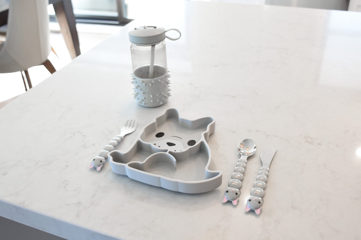 Farfurie compartimentata din silicon cu ventuza, Melii, bulldog Sa recunoastem, a hrani copiii mici nu este pentru cei slabi de inima, este o treaba care implica multa MURDaRIE! Adorabilele noastre farfurii din silicon, cu ventuza, au scopul de a face ora mesei mai putin stresanta si mult mai distractiva! Asezati farfuria compartimentata din silicon cu ventuza, Melii, bulldog pe o suprafata plana si lasati ventuza sa faca magia - farfuria Melii bulldog se va lipi de scaunul de hranire sau direct de masa si va puteti linisti stiind ca micutul dumneavostra nu va arunca sau tranti farfuria pe podea. Compartimentele ajuta la mentinerea alimentelor separate si ii ajuta pe copii sa-si serveasca singuri mancarea indeamnandu-I la o masa echilibrata. CARACTERISTICI PRODUS Se fixeaza cu ventuza pe majoritatea suprafetelor si se potriveste cu majoritatea scaunelor de masa. Designul distractiv cu personaje care incurajeaza hranirea independenta si creeaza o asociere pozitiva cu ora mesei. Compartimente care mentin alimentele separate si care ajuta copiii sa-si serveasca mancarea independent. 100% silicon alimentar de calitate Usor de curatat in masina de spalat vase pe raftul superior Sigur pentru utilizarea in cuptor, sau cuptorul cu microunde Fara BPA, plumb, PVC, cadmiu, ftalati Varsta recomandata 6 luni +