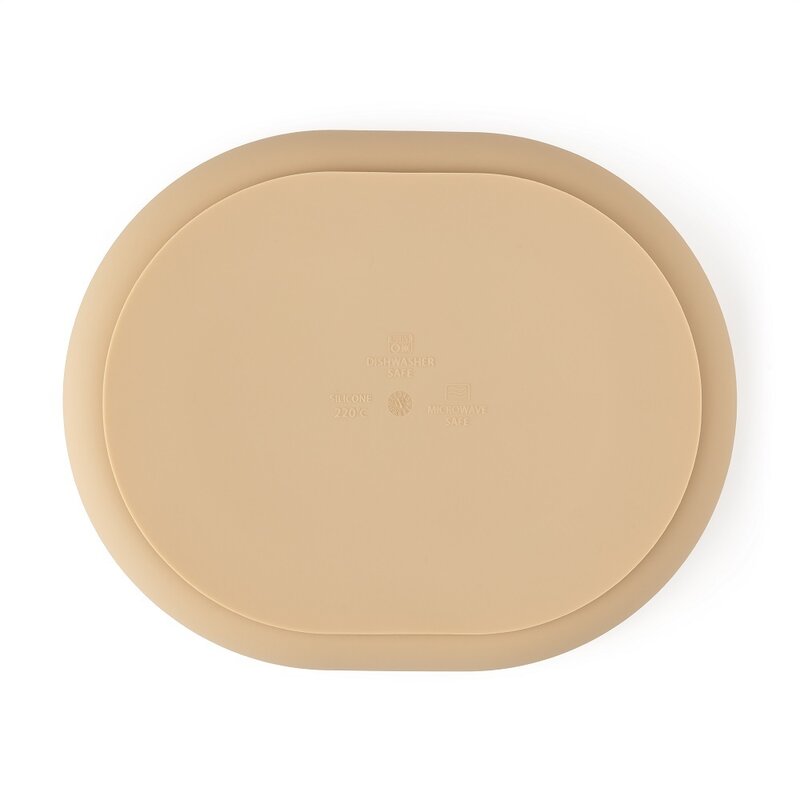 Farfurie compartimentata, Petite&Mars, Take&Match, Ovala, Cu ventuza si 3 compartimente, Silicon, Fara BPA, 630 ml, 6 luni+, Bej