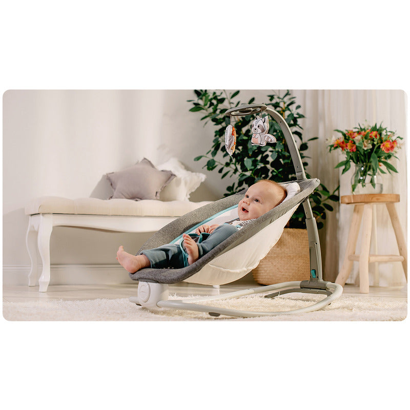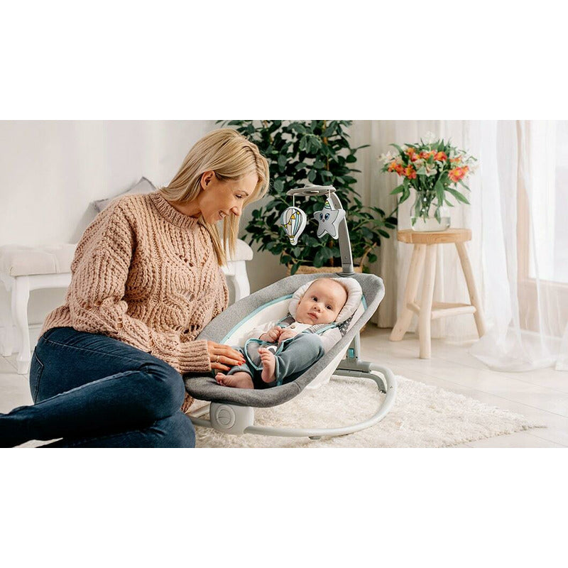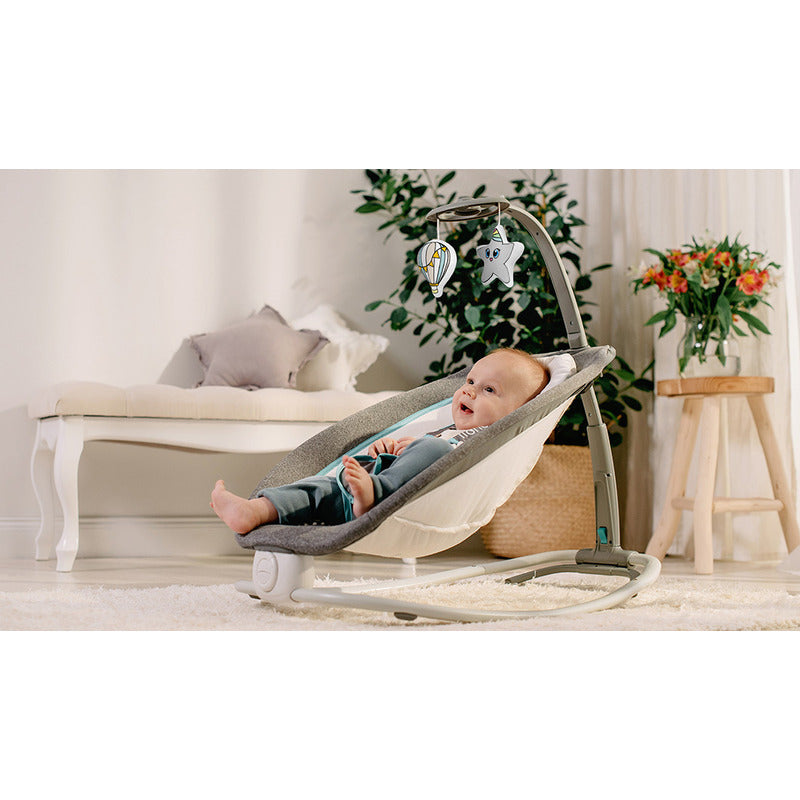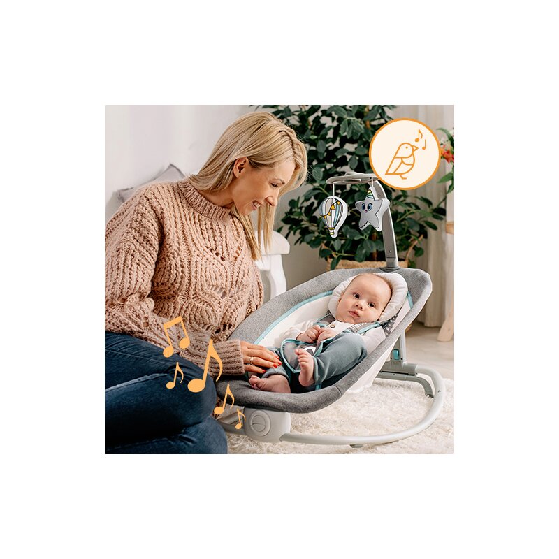 Puteti ridica spatele copilului mai sus, ceea ce permite o reglare in 3 trepte a spatarului. Melodiile si bara cu jucarii vor concentra atentia copilului asupra sunetelor sau a jucariilor moi, antrenandu-i atentia. Poti plia leaganul in dimensiuni mici, pentru a-l impacheta usor in portbagaj. In acest fel, veti oferi copilului un loc sigur si familiar in timpul vizitelor la prieteni sau in vacante.
