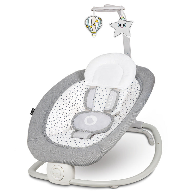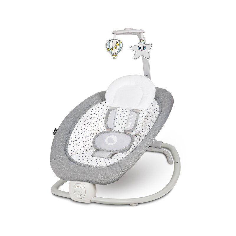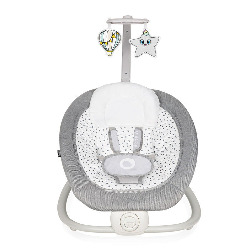 Fotoliu balansoar, Lionelo, Cu vibratii, Pascal Scandi, Cu 12 melodii linistitoare, Pliabil, 80x49 cm, Gri Deschis
