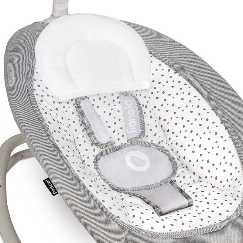Beneficiati de solutii care sa asigure confortul vostru comun - descoperiti leaganul Lionelo Pascal! Este un loc confortabil si sigur pentru cel mic, cu un sistem manual de leganare. Constructia se indoaie usor sub influenta miscarilor naturale ale copilului, adaptand ritmul leaganului la greutatea si activitatea acestuia. Functiile suplimentare - vibratii si redarea melodiilor, fac ca leaganul sa fie potrivit pentru ingrijirea copilului de la nastere pana la atingerea greutatii de 9 kg (sau momentul in care incepe sa stea singur in sezut).