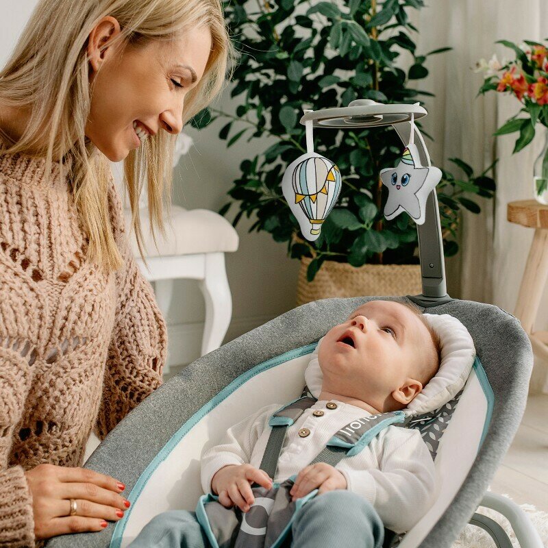 Puteti ridica spatele copilului mai sus, ceea ce permite o reglare in 3 trepte a spatarului. Melodiile si bara cu jucarii vor concentra atentia copilului asupra sunetelor sau a jucariilor moi, antrenandu-i atentia. Poti plia leaganul in dimensiuni mici, pentru a-l impacheta usor in portbagaj. In acest fel, veti oferi copilului un loc sigur si familiar in timpul vizitelor la prieteni sau in vacante.