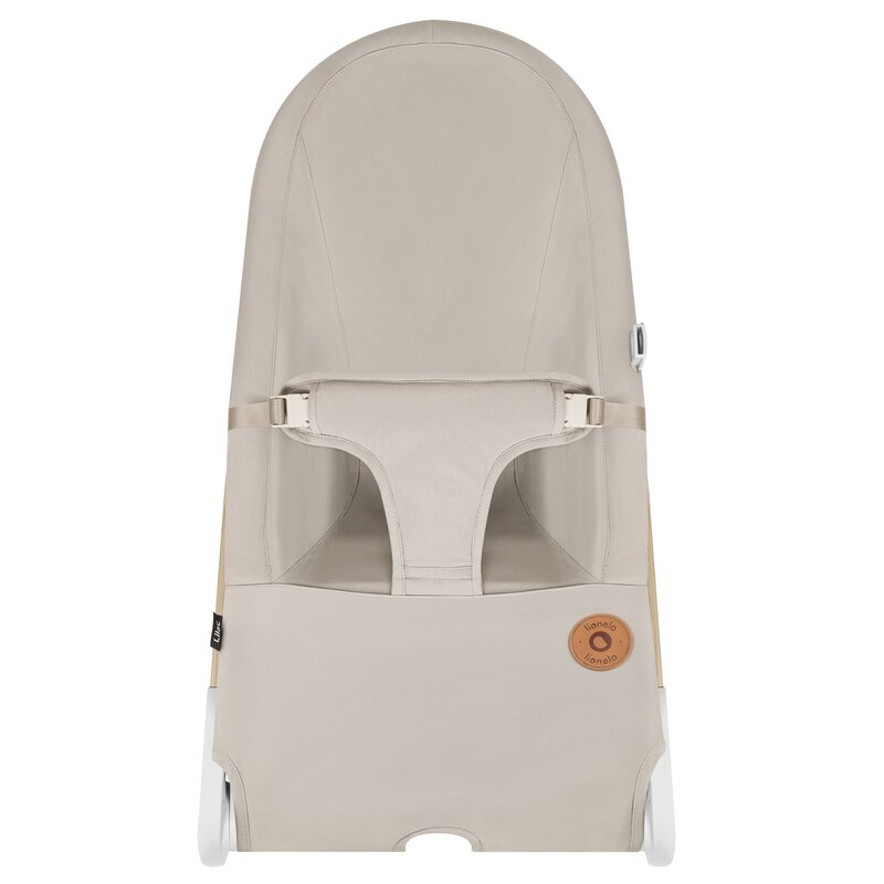 Fotoliu balansoar, Lionelo, Lilac, Cu arcada cu jucarii, Ergonomic, Reglare spatar in 3 pozitii, Pernuta moale invelita in tesatura de bambus, Pliabil, 0-6 luni, Bej