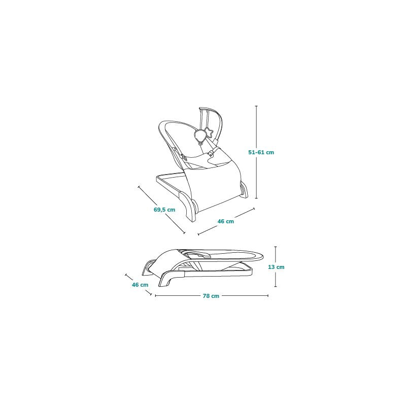 Datorita designului pliabil, balansoarul poate fi depozitat cu usurinta in locuintele mai mici si transportat fara efort in calatorii.