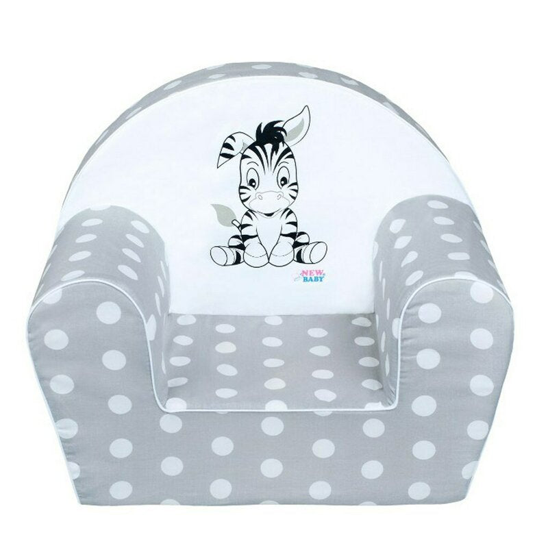 Fotoliu din burete, New Baby, Pentru copii, 42x53, Din spuma, Cu husa din bumbac, 9 luni - 5 ani, Zebra Grey