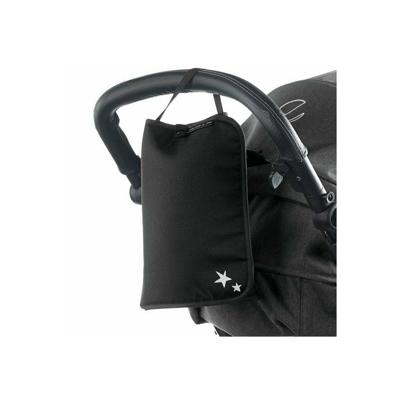 Se ataseaza cu usurinta de manerele caruciorului datorita sistemului lateral de fixare.