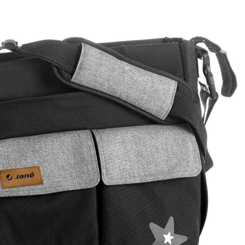 Geanta pentru mamici, Jane, Cu 2 buzunare exterioare, Cu multiple compartimente, Cu saltea de infasat inclusa, 44 x 34 cm, Conform cu standardul de securitate europeana EN 71-3:2019, Soil