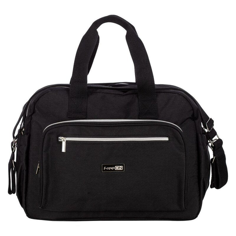 Geanta pentru scutece, FreeON, Style, Impermbeabila, Cu multiple buzunare, Dimensiune compacta, 39x32x18 cm, Black