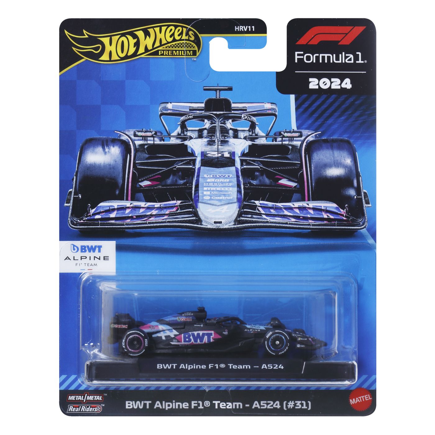 HOT WHEELS PREMIUM REAL RIDERS FORMULA 1 2024 MASINUTA METALICA BWT ALPINE F1 TEAM A524 NUMARUL 31 SCARA 1 LA 64