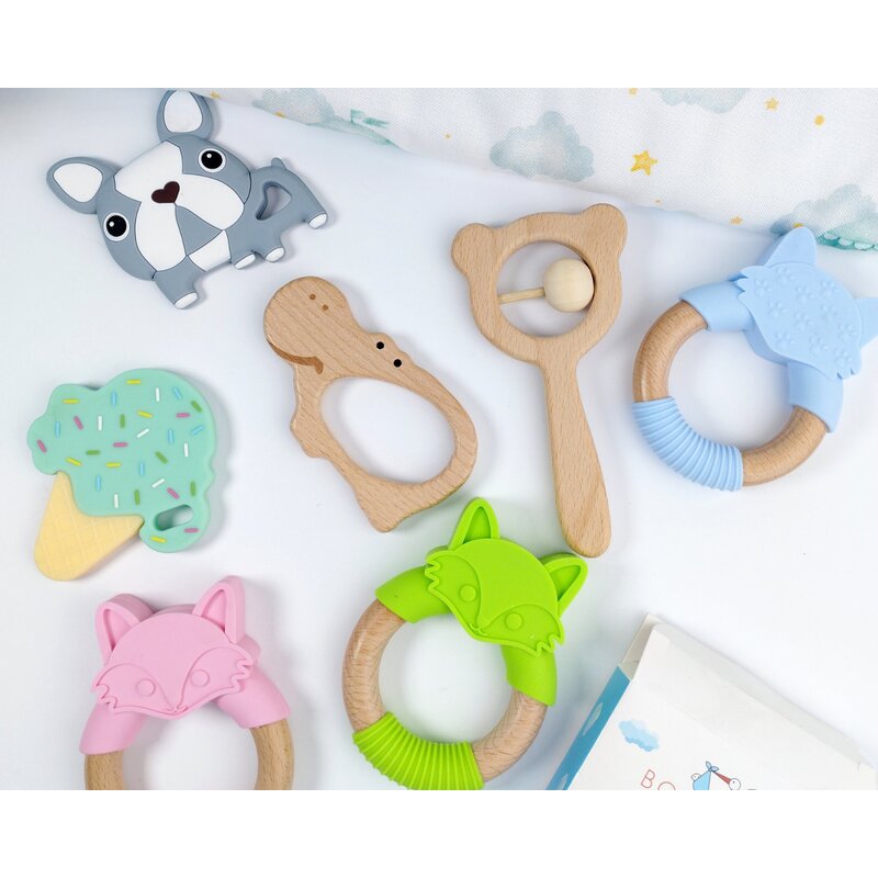 - Fabricat din lemn si silicon flexibil care se adapteaza la gingiile bebelusului.