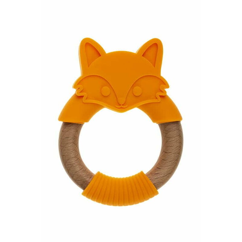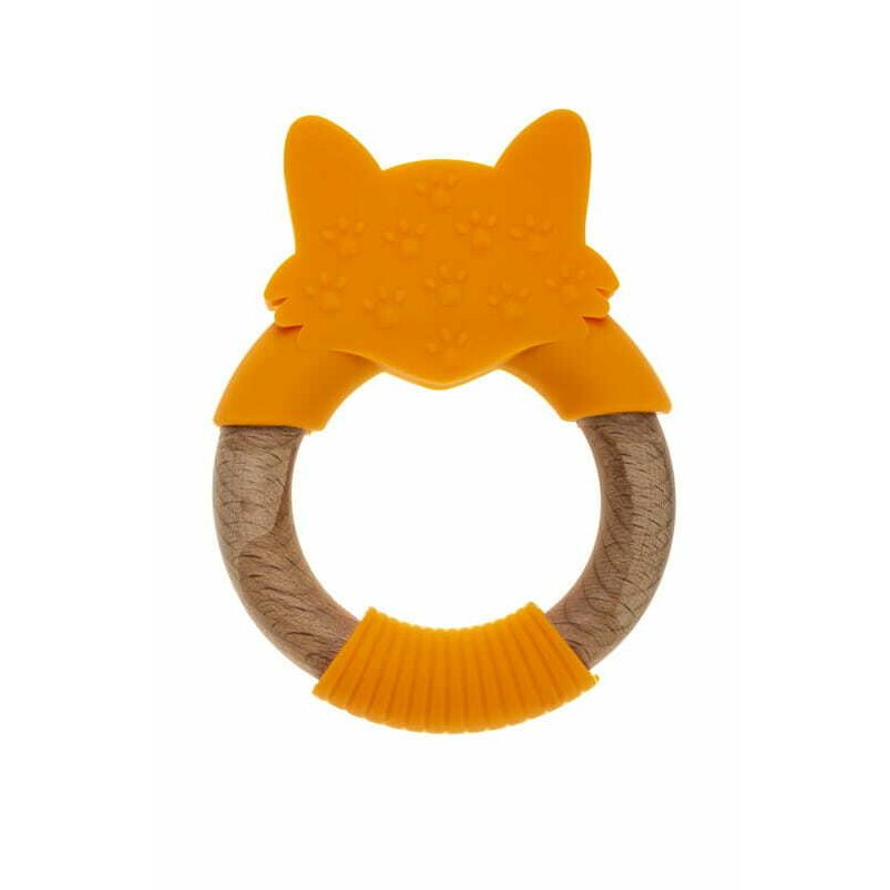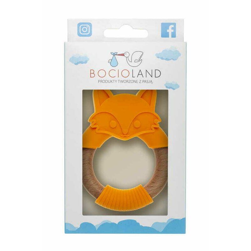 Jucarie de dentitie, Bocioland, Din silicon si lemn, Usor de prins, Bpa Free, Vulpe, Portocaliu