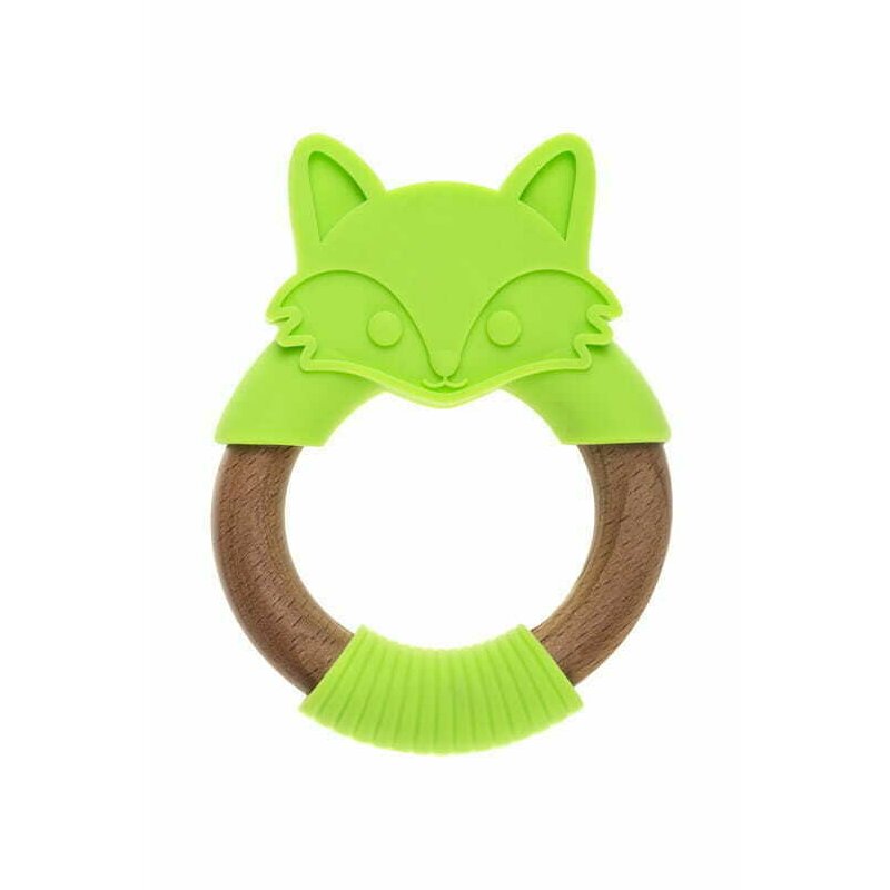Jucarie de dentitie, Bocioland, Din silicon si lemn, Usor de prins, Bpa Free, Vulpe, Verde