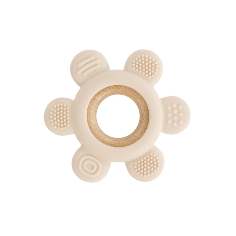 Jucarie dentitie bebelusi, Jane, Din silicon si lemn, Fara BPA, Sand