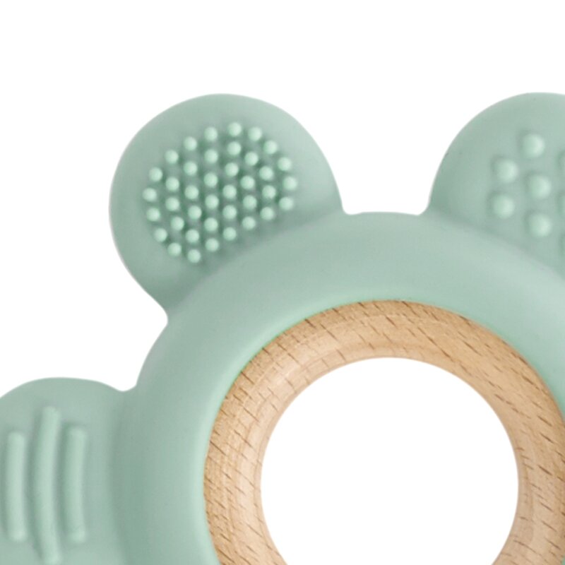 Fabricat din silicon alimentar de inalta calitate si interior din lemn natural, este complet lipsit de BPA, PVC si ftalati – sigur pentru muscat, mestecat si ros.