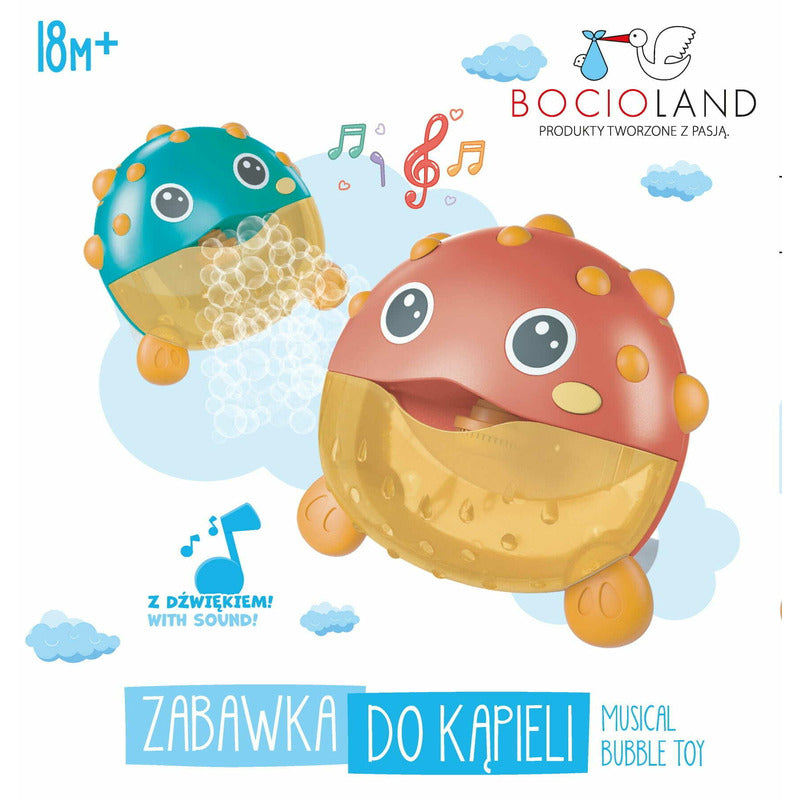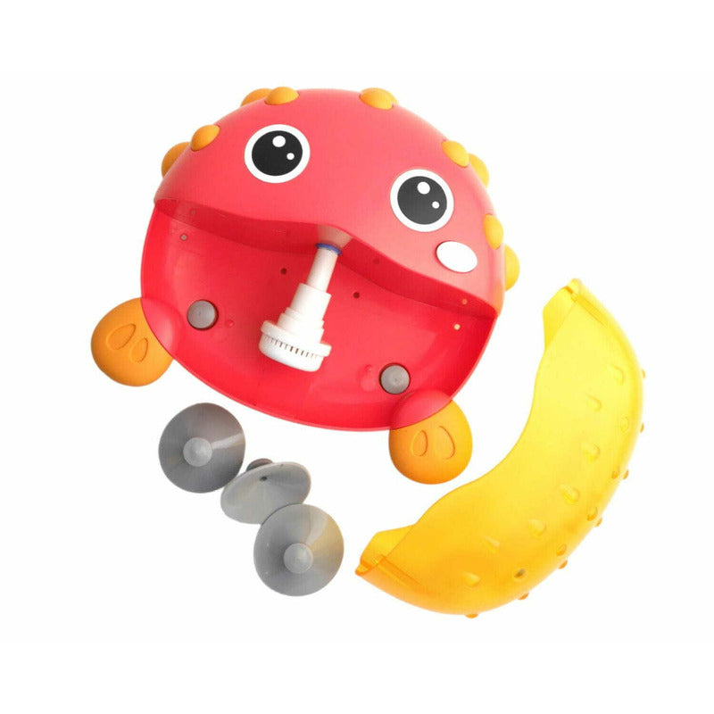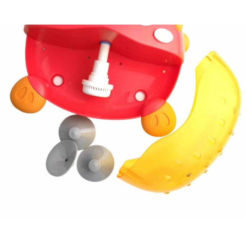 Jucarie Interactiva de baie, Bocioland, Peste cu difuzor pentru baloane de spuma si muzica, Fixare cu Ventuze, Rosu, 20x20 cm