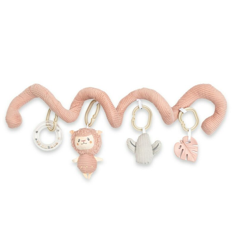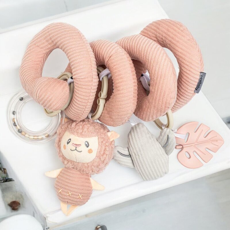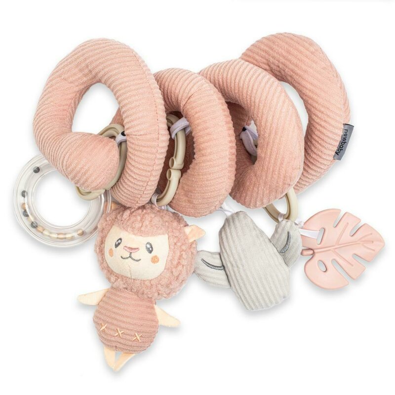 Jucarie interactiva, New Baby, Spirala, Lama, Pentru atasare la patut sau carucior, Dezvolta abilitatile motorii, Include si jucarie pentru dentitie, Fara BPA, 0 luni+, Multicolor
