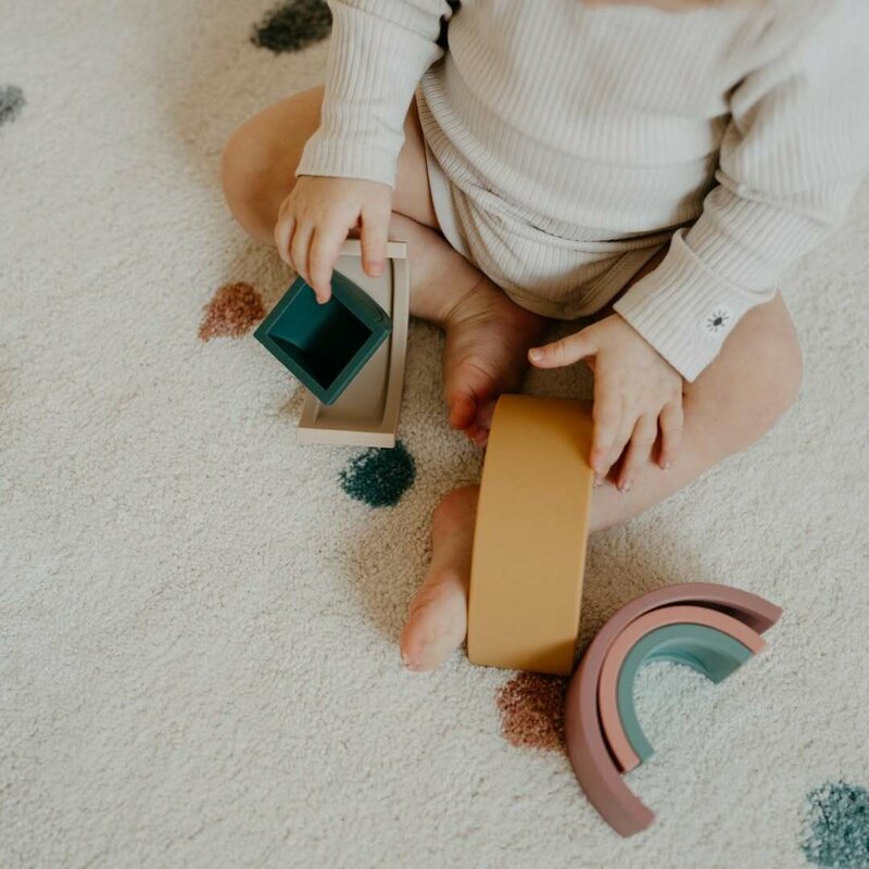 - Jucaria de stivuire din silicon RAINBOW consta din sase arce colorate care, atunci cand sunt plasate unul peste celalalt, creeaza un curcubeu frumos.