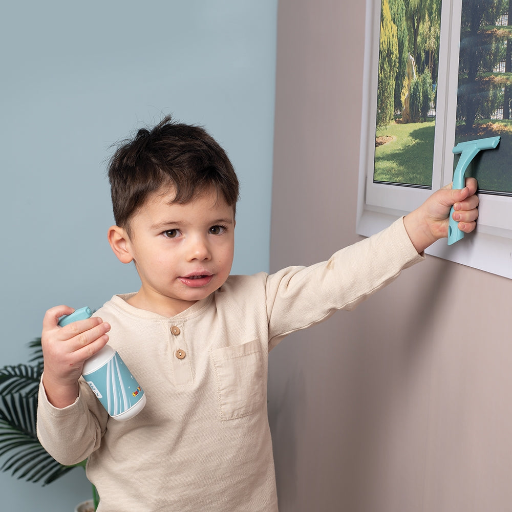 - Este format dintr-o matura mare, o matura mica, o lopata, o racleta pentru geamuri, un spray de curatare si un sapun