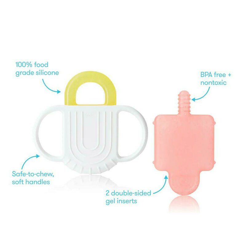 - Mâner neînghețat – mânerul din silicon sigur rămâne la temperatura camerei, protejând mâinile copilului; poate fi curățat în mașina de spălat vase;