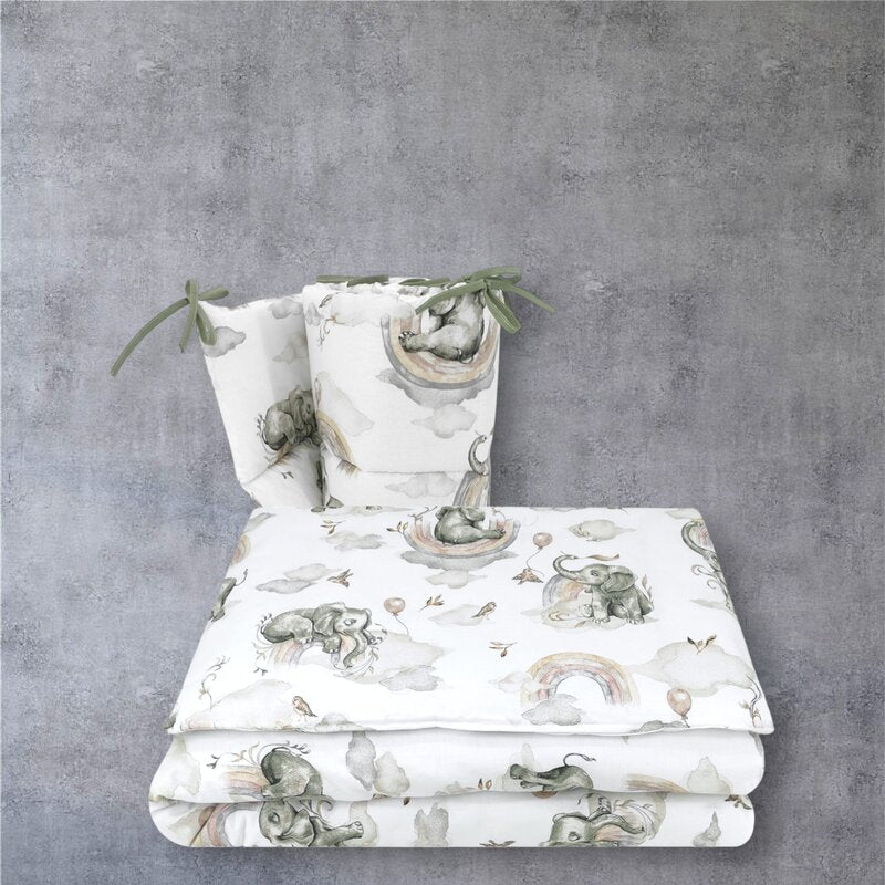 Ofera-i bebelusului tau un spatiu de odihna sigur, confortabil si plin de caldura cu setul de lenjerie Qmini – Elephants on Rainbow. Creat pentru a aduce liniste si protectie in primele luni de viata, acest set imbina estetica delicata cu materiale prietenoase cu pielea sensibila, fiind alegerea ideala pentru orice parinte modern.