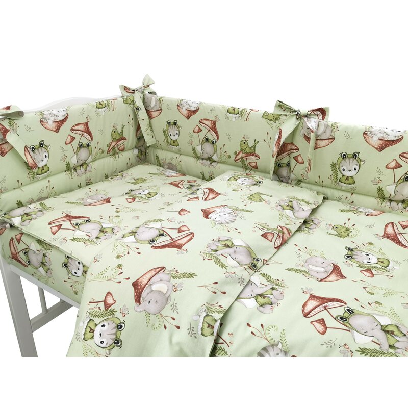 Lenjerie patut 3 piese, Qmini, Pentru patut 120x60 cm, Cu protectie laterala, Din bumbac certificat Oeko Tex Standard 100, Frogs