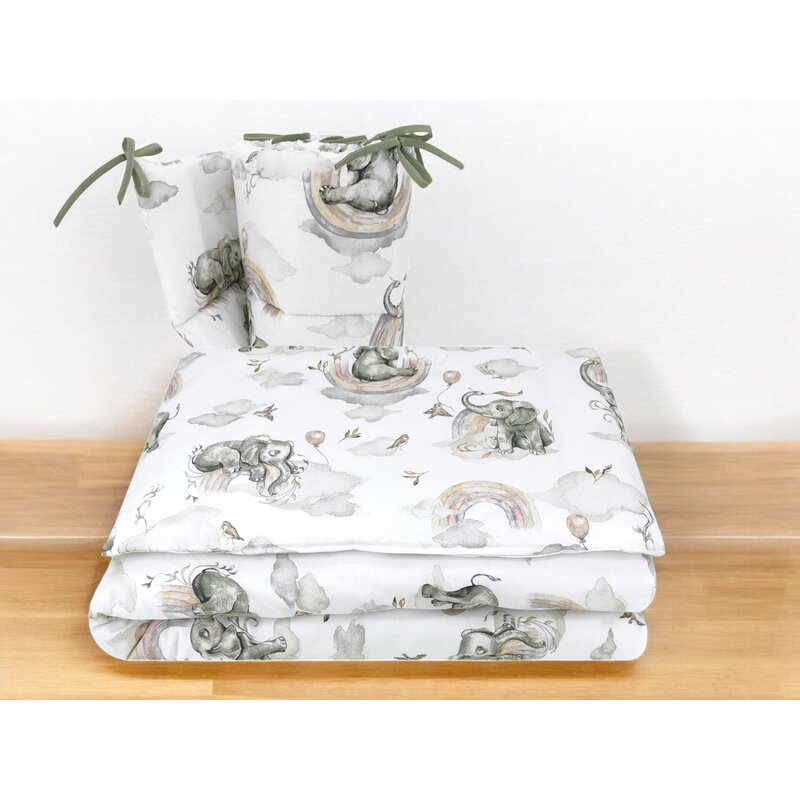 Ofera-i bebelusului tau un spatiu de odihna sigur, confortabil si plin de caldura cu setul de lenjerie Qmini – Elephants on Rainbow. Creat pentru a aduce liniste si protectie in primele luni de viata, acest set imbina estetica delicata cu materiale prietenoase cu pielea sensibila, fiind alegerea ideala pentru orice parinte modern.