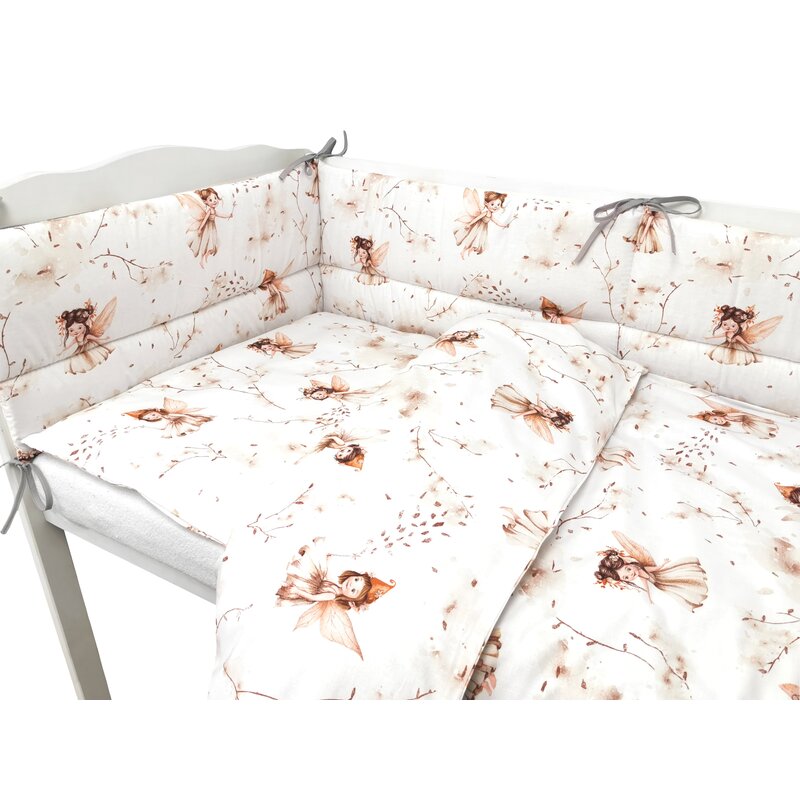 Lenjerie patut cu 3 piese, MimiNu, Pentru patut 120x60 cm, Cu protectie laterala, Din bumbac certificat Oeko Tex Standard 100, Fairy