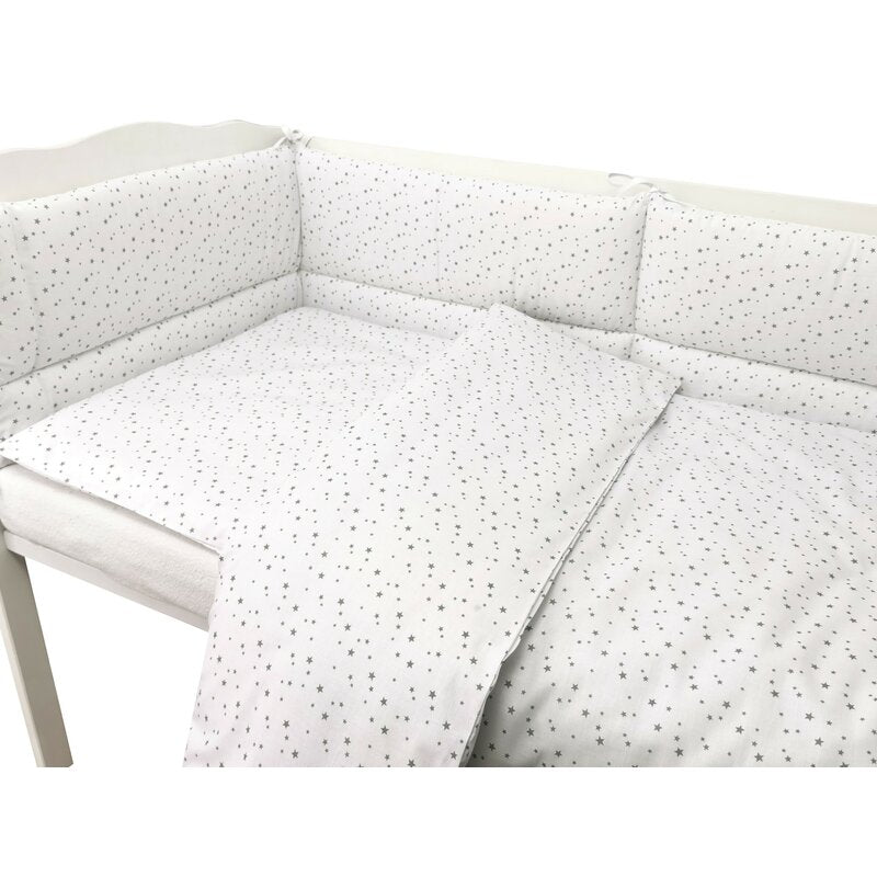 Lenjerie patut cu 3 piese, MimiNu, Pentru patut 120x60 cm, Cu protectie laterala, Din bumbac certificat Oeko Tex Standard 100, Mini Gray Stars