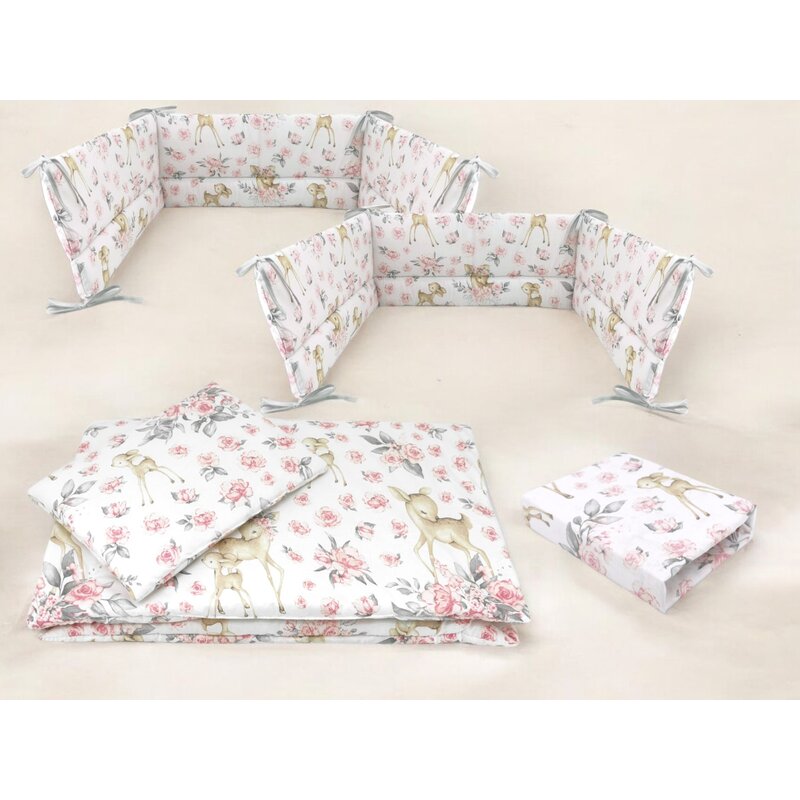 ⭐ Set lenjerie 5 piese pentru patut – MimiNu – Colectia Sweet Deer Pink