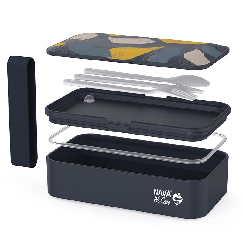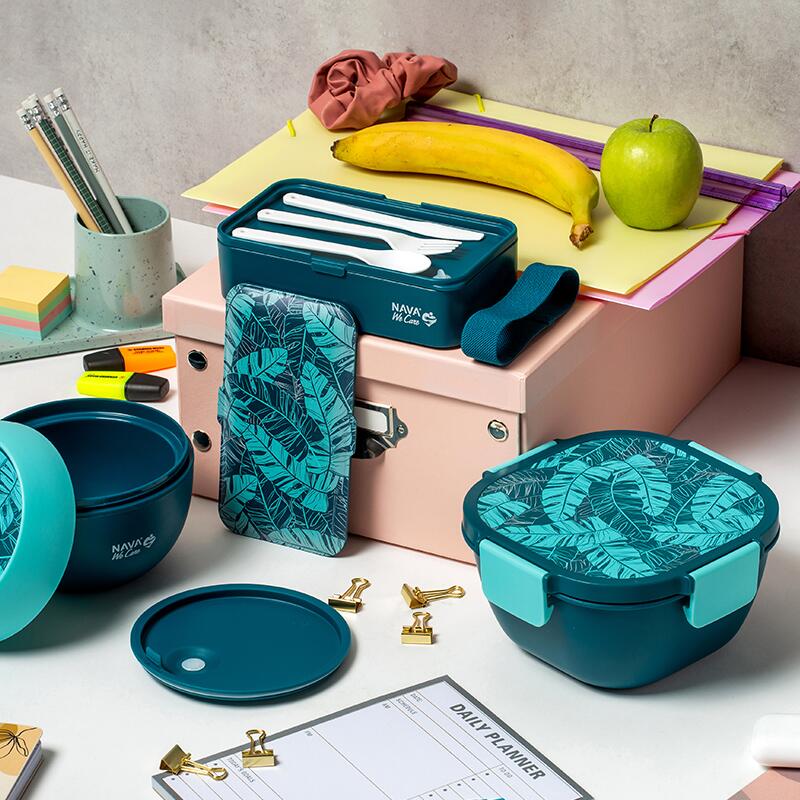 Recipientul pentru alimente "We Care" de 650 ml de la Nava, cu furculiță, lingură și cuțit integrat în capac, este recipientul ideal pentru transportul și depozitarea alimentelor. Este realizat din plastic de înaltă calitate, fără BPA, PVC, ftalați și alte elemente nocive și complet sigur pentru depozitarea igienică a alimentelor. Capacul are un inel de silicon pentru o inchidere ermetica si prindere clipsata pentru a preveni eventualele scurgeri in timpul transportului. În spatiul de depozitare din capac se regasesc o lingură, o furculiță și un cuțit. O bandă elastică fixează suplimentar recipientul. Este ideal pentru școală, serviciu și excursii sau oriunde ți se potrivește. Este rezistent la temperaturi cuprinse intre -20°C si 120°C. "We care" este o gama de caserole pentru depozitarea alimentelor fabricate conform reglementărilor pentru produsele ce intra în contact cu alimentele. Sunt alegerea sănătoasă, perfectă pentru depozitarea alimentelor. Potrivit pentru cuptorul cu microunde. Se poate spăla în mașina de spălat vase. Potrivit pentru congelare.