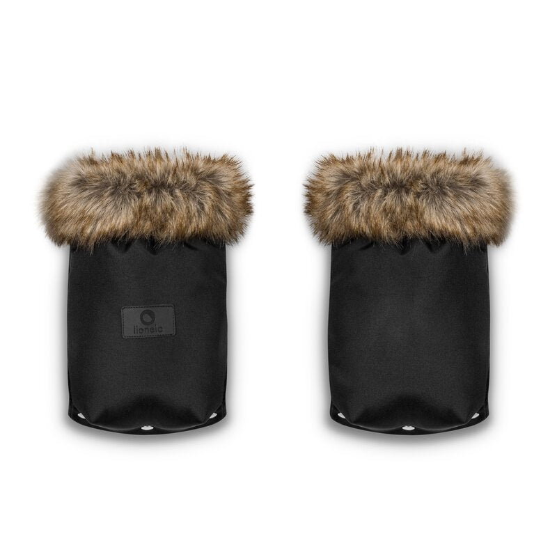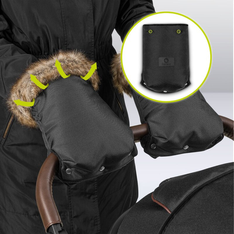 Manusi termice pentru carucior, Lionelo, Universale, Impermeabile, Interior din lana, Cu blana ecologica detasabila, Negru
