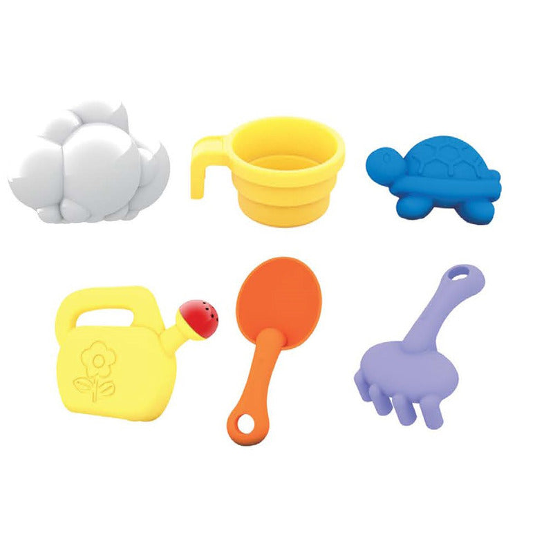 - Exista 6 jucarii diferite incluse in pachet pe care le puteti folosi separat sau impreuna atat pentru locul de joaca, dar si in gradina, pe balcon sau in baie. Masa este potrivita atat pentru exterior, cat si pentru interior.