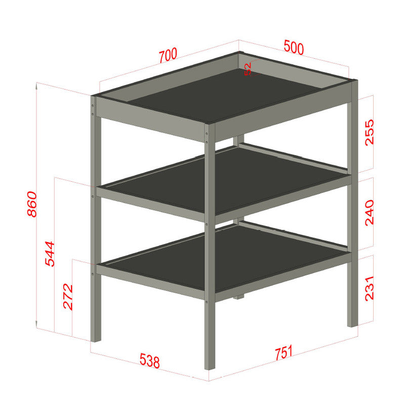 ✅ Design compact si eficient – Cu dimensiuni reduse, masuta se potriveste perfect in orice spatiu, fiind usor de adaptat in camere de orice marime. Datorita spatiilor libere dintre polite, depozitarea devine simpla si accesibila – fie ca alegi sa pui lucrurile in cutiute pentru economisirea spatiului sau direct pe polite pentru un acces rapid.