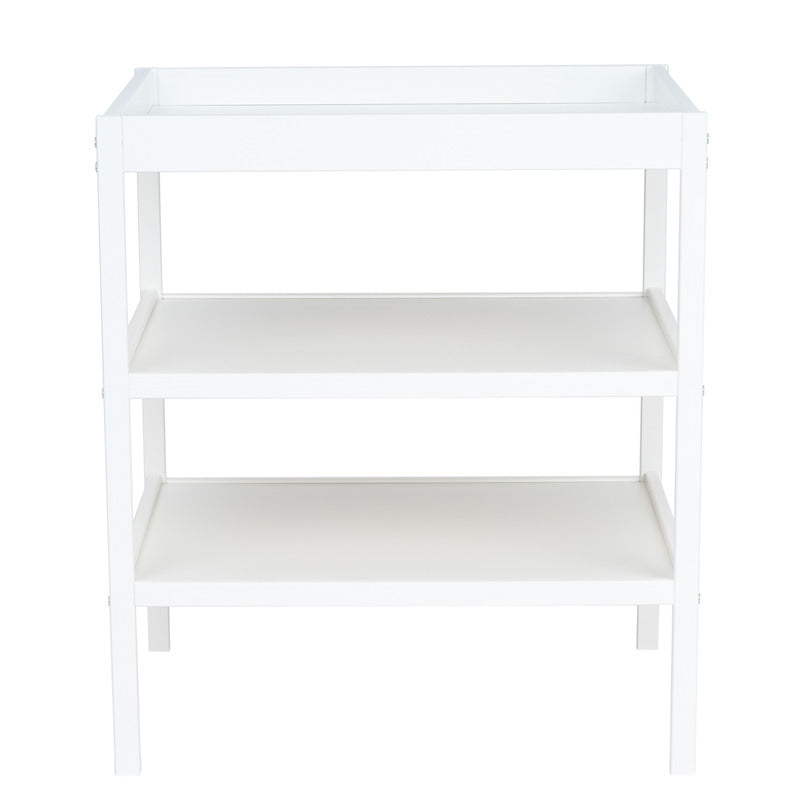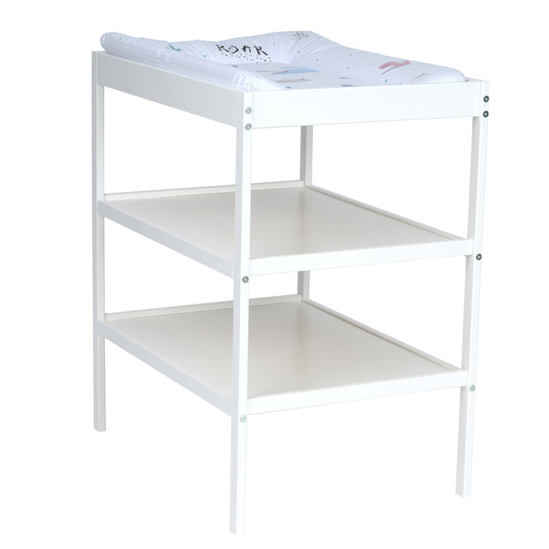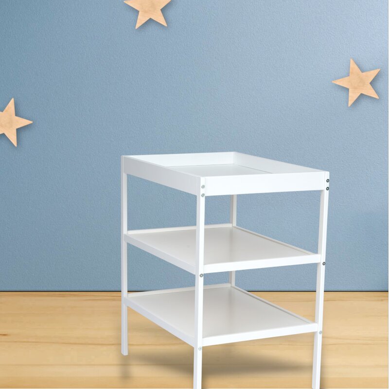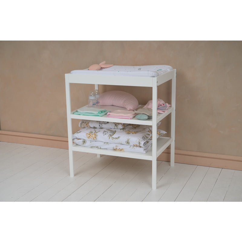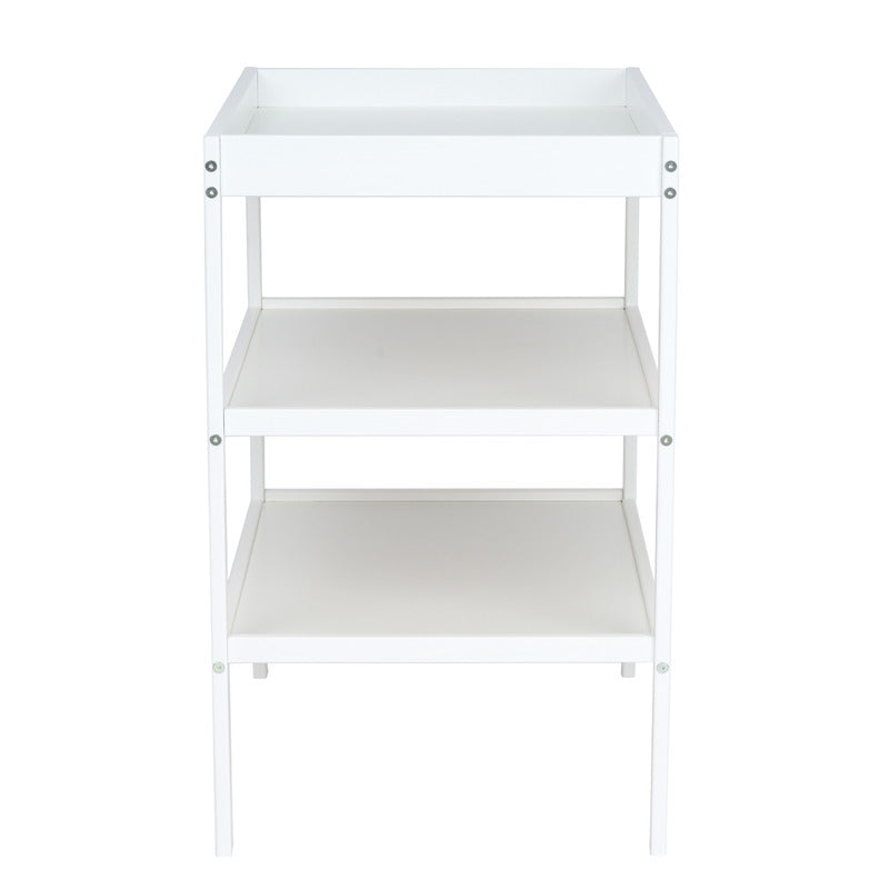 Masuta de schimbat, Qmini, Cu 2 polite pentru depozitare, Potrivita pentru saltelute de infasat de 70x50 cm, Inaltime 86 cm, Alb
