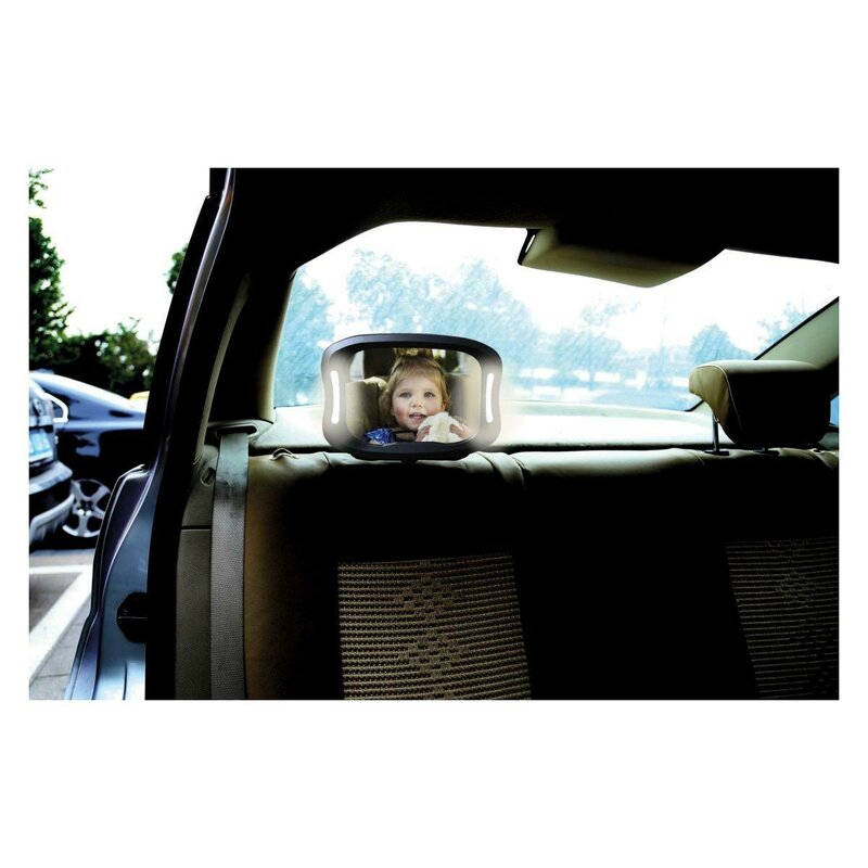 Iluminare LED integrata pe ambele laturi ale oglinzii creeaza o lumina ambientala blanda, perfecta pentru calatoriile nocturne, fara a-i deranja pe cei mici.