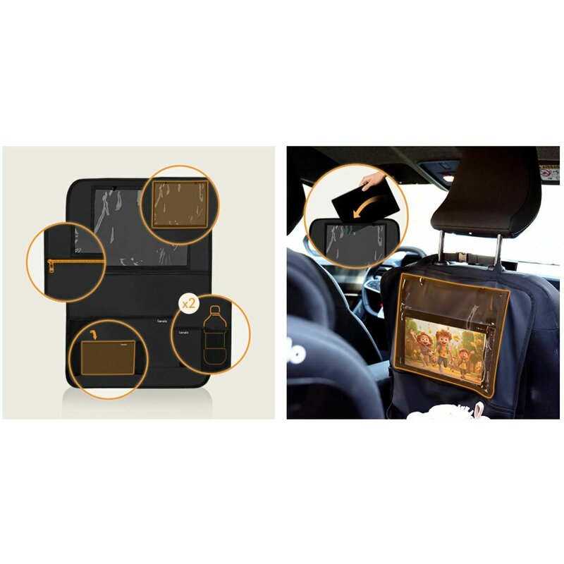 Organizatorul dispune de 5 buzunare de dimensiuni diferite, oferind un spatiu bine structurat pentru toate lucrurile esentiale. Unul dintre buzunare este special conceput pentru o tableta, astfel incat copilul sa se poata bucura de desene animate in timpul calatoriei. De asemenea, ofera acces facil la gustari sau bauturi pe durata drumului.