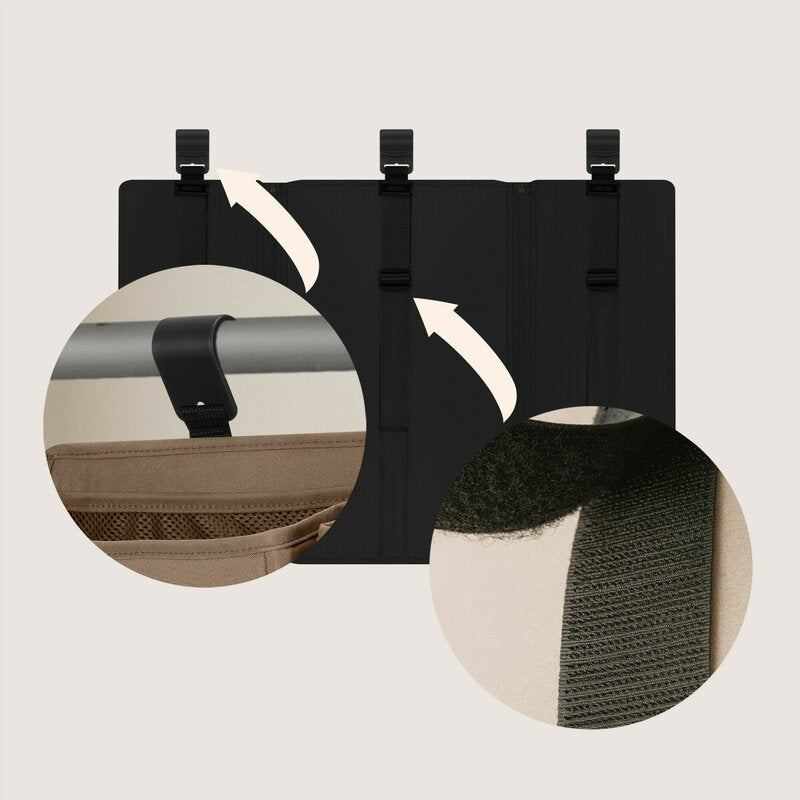Poți fixa organizatorul de bări înguste cu ajutorul cârligelor, iar de elemente mai late folosind benzile velcro. Această libertate de montaj permite adaptarea la diverse tipuri de mobilier.