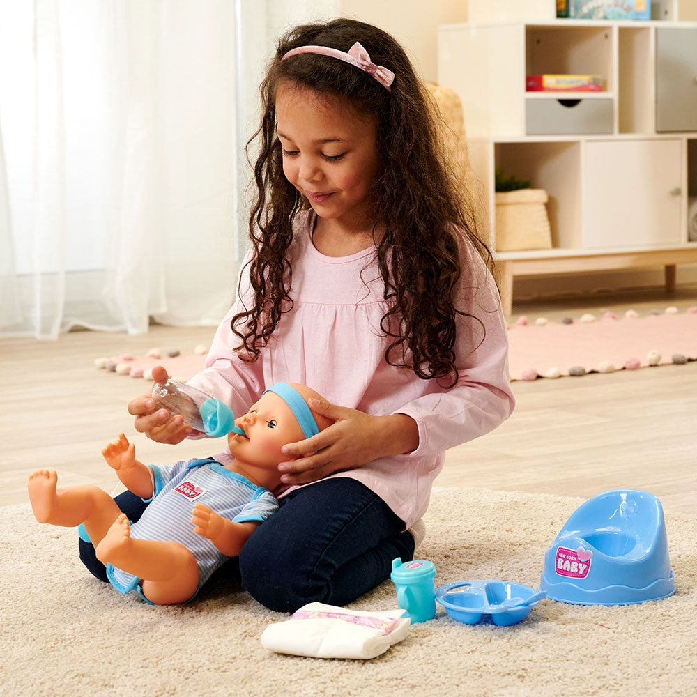 - Setul include tot ce este necesar pentru ingrijirea papusii. Poti s-o hranesti, sa-i dai o suzeta, sa-i schimbi scutecul si s-o pui pe olita